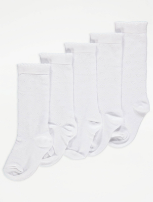 White Heart Knee High Socks 5 Pack Kids George At Asda